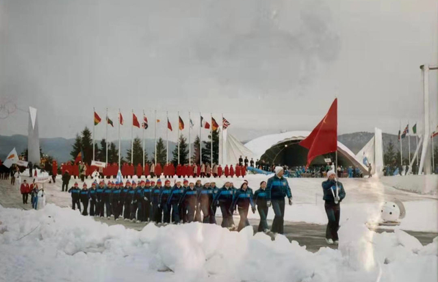 1980年2月13日,中国队在美国普莱西德湖冬奥会开幕式上入场